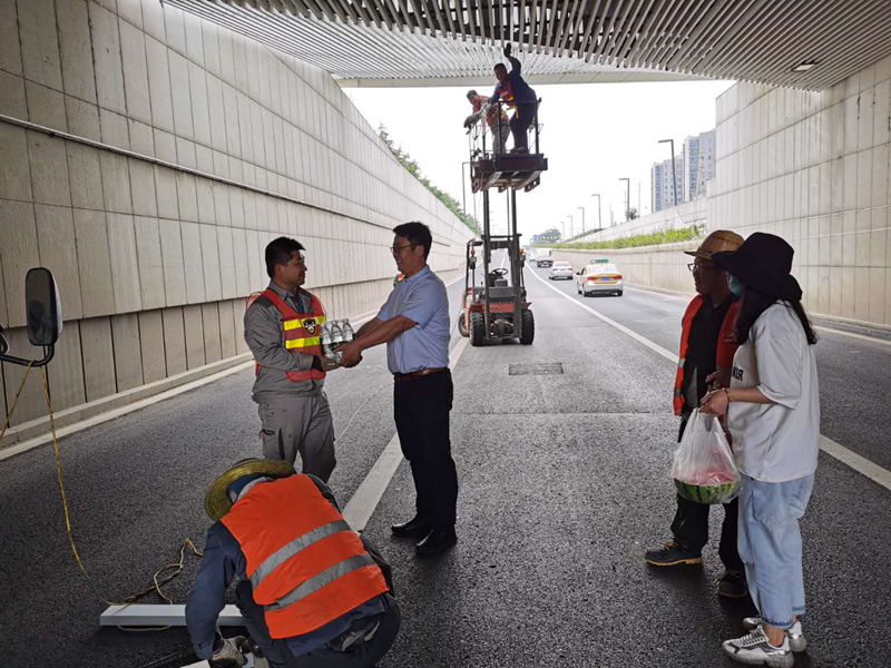 5月29日,隨著季節(jié)變化,戶外氣溫不斷攀升,給奮斗在露天施工現場的翔立“鐵軍”們帶來諸多不便,太陽暴曬、酷熱難耐、體能消耗很大。為了切實關愛職工,傳遞公司對員工無微不至的體恤關懷,翔立分公司工會第一時間組織送清涼到一線活動,購買了防暑降溫飲品、礦泉水、西瓜等,驅車來到花果山大道立交橋維修工程現場,將飲品及時發(fā)放到每一個施工人員手中。通過送清涼活動的開展表達了分公司關愛職工的情懷,也給炎熱的天氣帶來了一絲愜意,一縷清涼。
