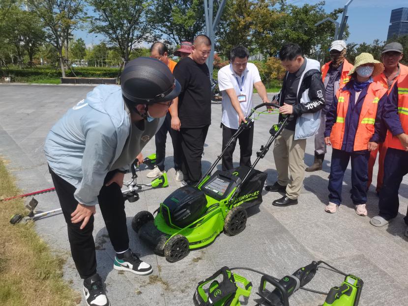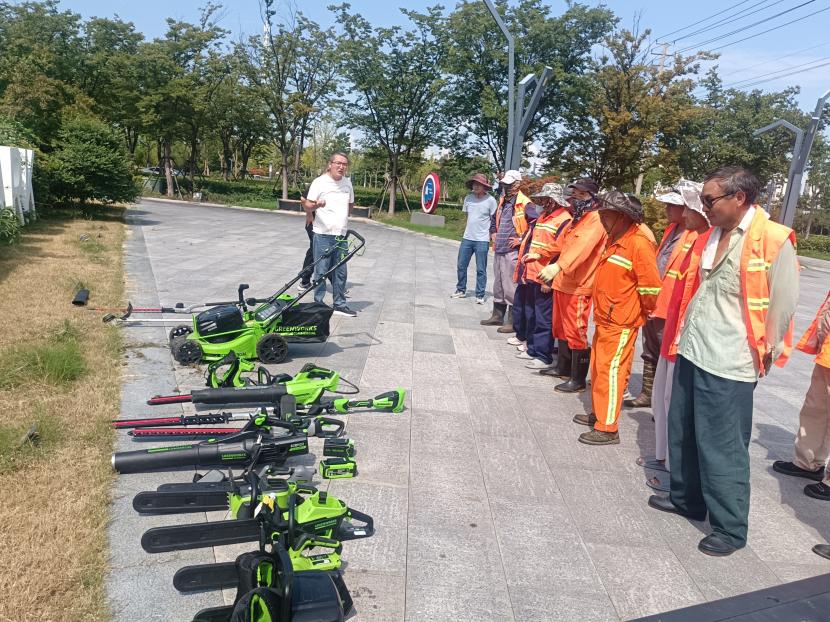 8月16日,創(chuàng)智綠園內(nèi)綠意盎然、生機(jī)勃勃。為積極響應(yīng)國家環(huán)保政策,提升綠化養(yǎng)護(hù)效率與質(zhì)量,綜合管理部精心策劃并組織開展了“綠化新型電動(dòng)機(jī)械展示與試用”活動(dòng)。本次活動(dòng)特別邀請了綠化分公司和益豐園林分公司的專業(yè)團(tuán)隊(duì)參與,共同見證了電動(dòng)綠籬機(jī)、電動(dòng)割灌機(jī)、電動(dòng)草坪機(jī)、電動(dòng)鼓風(fēng)機(jī)及電動(dòng)鏈鋸等先進(jìn)設(shè)備的風(fēng)采。