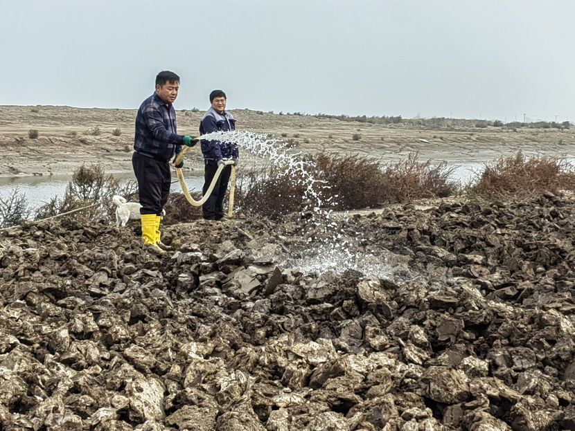 據(jù)悉,此地塊原為鈣液生產(chǎn)單元,鹽堿度高,搞種植業(yè)難度大,荒廢已經(jīng)一年多,為改良土地,推動(dòng)鹽漬化土壤生態(tài)修復(fù)與開發(fā)利用,做好種植試驗(yàn),養(yǎng)殖分公司選址一塊3-5畝地塊先進(jìn)行人工翻土,然后通過過水壓鹽,大水洗鹽等方法弱鹽,以達(dá)到土地利用的目的。在復(fù)墾改良土地同時(shí)還在積極調(diào)研尋求耐堿植物以適應(yīng)該鹽堿地原土種植。