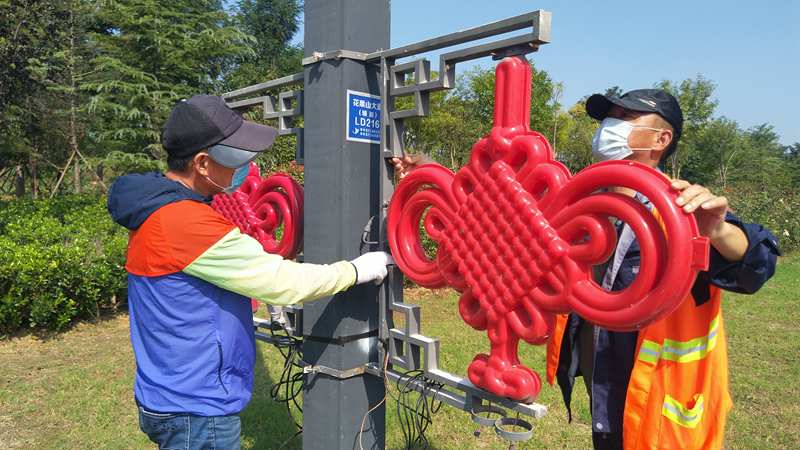 和往年一樣,今年“中秋”“國慶”兩節(jié)前夕,資源管理分公司組織公司精兵強將加入到翔立分公司兩節(jié)前道路亮化景觀突擊行動中,該公司這些志愿者隊員有的維修破損的中國結(jié)紅燈籠等亮化燈,有些負(fù)責(zé)安裝、運輸,為在節(jié)前加快完成安裝任務(wù)貢獻(xiàn)了自己的力量。圖為該公司志愿者在安裝自貿(mào)區(qū)主干道上的“中國結(jié)”亮化路燈。