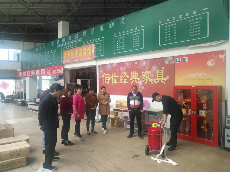 近期,臨達公司為更好的做好光伸家具市場消防工作,特別購置了7具20公斤推車式干粉滅火器。面對新事物,就有新方法、新要求,10月12日上午,臨達公司組織相關(guān)方人員,在現(xiàn)場進行了專項培訓,對其使用范圍、使用方法和注意事項作出詳細的講解。