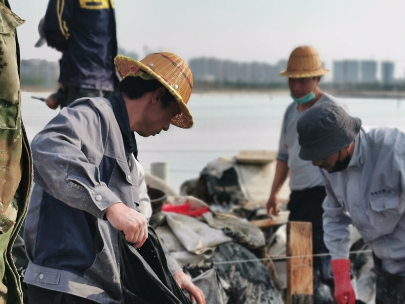 “比武”現(xiàn)場一片忙碌,各位“比武勇士”都是鹽灘的行家里手,共28名,分成4組,每組7人,在規(guī)定兩小時內完成塑布安裝。“比武”過程中,每組成員通力合作、一絲不茍,從嚴控制好每一道安裝工序和環(huán)節(jié),拼速度、比規(guī)范,確保安裝的塑布在使用中得心應手。