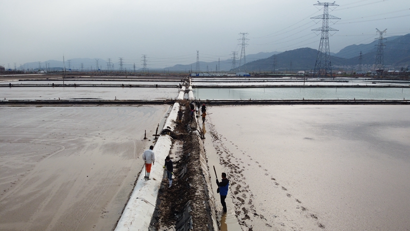 此時(shí)正是春曬制鹽的“黃金期”,海州灣公司獲知情況后,主動(dòng)帶領(lǐng)全體員工組成“突擊隊(duì)”為兄弟單位“減負(fù)”,在大家共同努力下長約1200米的池堰一上午修整完畢,為下一步的池內(nèi)壓實(shí)及早日灌池贏得了寶貴的時(shí)間。