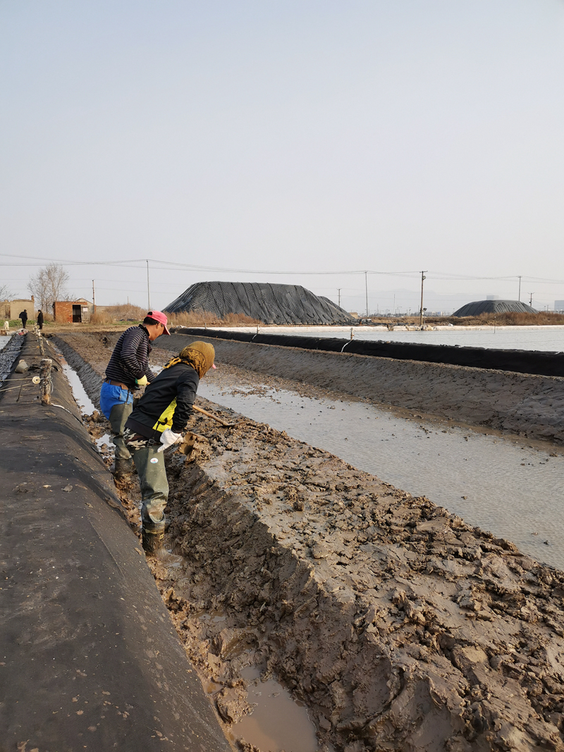 “駕駛挖掘機(jī)的是我女婿,這塊地以前是征地廢棄的,現(xiàn)在打好堰就能用起來?!毙律先蔚念I(lǐng)灘手徐傳禮指著正在土方作業(yè)的挖掘機(jī),算起了賬,“今年多產(chǎn)50噸鹽沒問題,自掏腰包改造還是劃算的?!?/span>