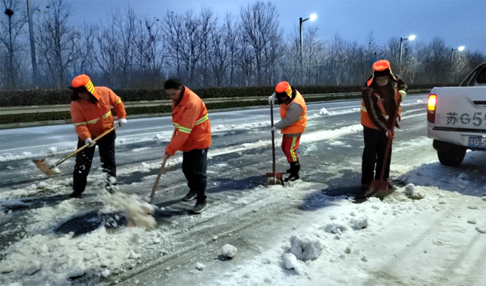 2月19日至21日,受持續(xù)大風寒潮天氣影響,給徐圩新區(qū)、板橋工業(yè)園區(qū)各條道路蓋上較厚冰層。為全力以赴掃雪除冰、排除隱患,悅升公司堅持“人動機動、雪停雪凈”原則,落實好“三包三聯(lián)”工作機制,實現道路通暢、安全出行,切實保障好廣大群眾正常生產生活秩序和生命財產安全。