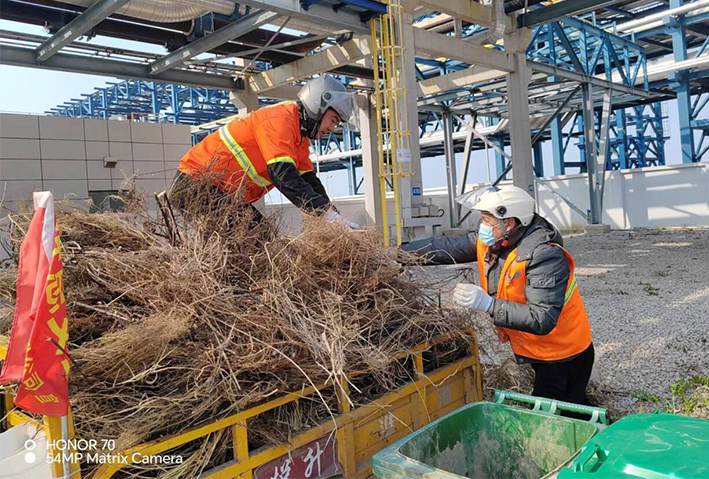 4月9日11點(diǎn),石化一班接到公司應(yīng)急處理任務(wù),中化倉(cāng)儲(chǔ)車間院內(nèi)有多處雜草、垃圾需及時(shí)處理。班長(zhǎng)陳小軍與同事陸軍等同志顧不上用午餐,迅速騎上電動(dòng)三輪車奔赴現(xiàn)場(chǎng)。現(xiàn)場(chǎng)工作中,大家相互配合,無(wú)所顧及枯草、生活垃圾發(fā)出的陣陣難聞怪味。徒手裝車,轉(zhuǎn)運(yùn)傾倒,經(jīng)過(guò)近三個(gè)多小時(shí)搶裝轉(zhuǎn)運(yùn),清理雜草20多車,各類垃圾30多袋,高質(zhì)量完成中化倉(cāng)儲(chǔ)罐區(qū)環(huán)境突擊任務(wù)。往來(lái)廠區(qū)車間工作人員看著雜亂不堪的垃圾瞬間消失在人們眼前,無(wú)不豎起贊許目光,此次保潔衛(wèi)士深入廠區(qū)開(kāi)展突擊治理,受到中化主管部門高度評(píng)價(jià)。(楊波)
