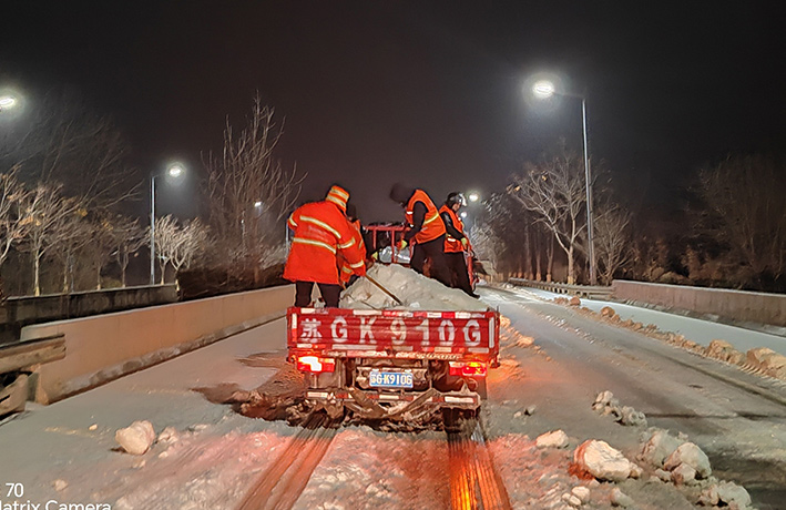 20日至21日,該分公司百余突擊隊(duì)員齊心協(xié)力、以雪為“令”、迅速破“冰”、無懼風(fēng)寒、不分白天與夜晚,持續(xù)工作10個(gè)多小時(shí),仍然堅(jiān)守道路最前沿。黨員先鋒張學(xué)軍、薛明柱、楊靜、石峰、朱海勇等同志更是率先垂范,黨員模范作用有力得以彰顯。到目前為止共人工撒放融雪鹽斤80多車,600多噸。