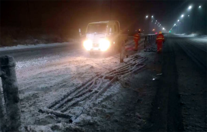 市政分公司根據(jù)公司安排,負(fù)責(zé)融雪劑裝卸工作,從2月3日下午到4日上午,市政分公司累計裝卸融雪劑已達(dá)150余噸。該分公司在做好保障融雪劑裝卸作業(yè)的同時,抽調(diào)4名精兵強將,處理因大雪導(dǎo)致的道路交通事故應(yīng)急處置4起,應(yīng)急處理道路護欄11節(jié),約38米,防止交通事故二次發(fā)生。在5日凌晨更是經(jīng)理盧正楊帶領(lǐng)10名黨員先鋒突擊隊,支援重點道路徐新路的融雪劑拋灑作業(yè),僅靠雙手揮著鐵锨,通宵奮戰(zhàn),迎難而上,高質(zhì)高效完成融雪劑拋灑作業(yè)路段。(李濤)