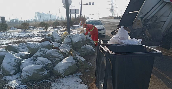 早上六點,在徐圩新區(qū)垃圾轉(zhuǎn)運站,環(huán)衛(wèi)分公司垃圾清運班組班長羅海軍正在等著垃圾收運中轉(zhuǎn)車的到來。他說:“知道昨晚下雪了,今天我們提前一小時就上崗了,以防因為道路濕滑影響收運效率?!?據(jù)統(tǒng)計,在持續(xù)低溫時段,他們每天清運生活垃圾高達15噸,清理轉(zhuǎn)運各類果皮箱垃圾達200余個及19家企業(yè)(單位)的垃圾桶,并同步負(fù)責(zé)裝運由道路保潔工人撿拾定點擺放在路邊的近500包袋裝垃圾。(何春林)