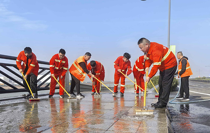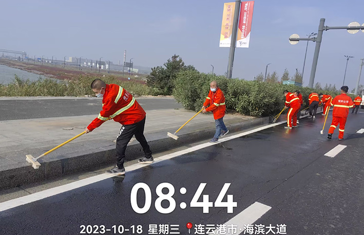 10月18日上午,悅升公司機(jī)關(guān)管理人員深入一線對(duì)海濱大道南卡口至疏港大道路段及橋梁路緣石進(jìn)行強(qiáng)化清洗,用實(shí)干打好賽道保障“戰(zhàn)役”。工作現(xiàn)場(chǎng),一臺(tái)高壓沖洗車先行對(duì)賽道路緣石和橋梁輔道進(jìn)行高壓沖洗,隨后,工作人員一字排開(kāi),用毛刷不斷擦洗地面頑固臟污,大家斗志昂揚(yáng)、步步推進(jìn),做到?jīng)_洗無(wú)漏洗、無(wú)死角,最后再用灑水車清洗一遍。經(jīng)過(guò)近三小時(shí)清洗,高標(biāo)準(zhǔn)完成路源石和橋梁輔道保潔清洗工作,有效提高了賽道潔凈度。截至目前,已完成該路段2000多米路緣石清洗工作。
