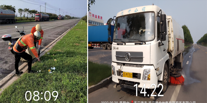 ? ? ? ?提升道路保潔率。出動高壓沖洗車、清掃車、對園區(qū)主次街路開展洗掃除塵、清掃保潔作業(yè),對重點路段祥和路、云港路實行“前高壓、后洗掃”的聯(lián)合編組作業(yè)模式,增加機械清洗頻次,保證道路潔凈度,進一步降低道路含塵量。充分發(fā)揮職業(yè)職能優(yōu)勢,實施“立體化、全覆蓋”的保潔模式,通過人機結(jié)合清洗主道和輔道5萬余米,為園區(qū)的靚麗再添新風(fēng)景。