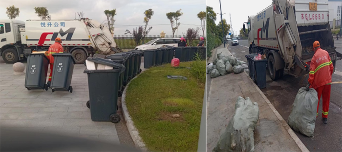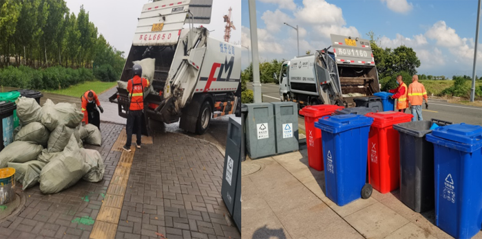 節(jié)日期間,環(huán)衛(wèi)分公司每天出2輛清運(yùn)車輛,隨車4名環(huán)衛(wèi)推桶工人、2名駕駛員,對(duì)徐圩新區(qū)住宅小區(qū)、企業(yè)(單位)及公共地段60個(gè)垃圾收集點(diǎn)的440個(gè)垃圾分類桶、200個(gè)果皮箱及400個(gè)垃圾包進(jìn)行清收。每日清收垃圾約20余噸,并及時(shí)將垃圾轉(zhuǎn)運(yùn)到垃圾中轉(zhuǎn)站。