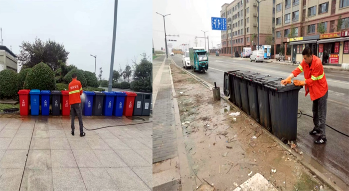 連日來,為進一步提升徐圩新區(qū)環(huán)境衛(wèi)生質量,營造干凈清爽的“兩節(jié)”氛圍,環(huán)衛(wèi)分公司對轄區(qū)內(nèi)生活垃圾桶、果皮箱進行全面清洗,得到了業(yè)主方肯定。