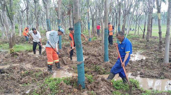 74日,大雨漸漸停息,綠化分公司立即啟動應急預案,結合實際制定工作計劃,出動3支綠化先鋒隊開展應急搶險工作,確保第一時間排除險情。